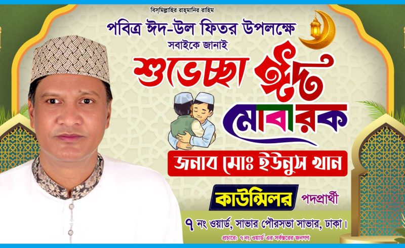 ঈদুল ফিতরের শুভেচ্ছা জানালেন সাভার পৌরসভার ৭নং ওয়ার্ড কাউন্সিলর প্রার্থী ইউনুস খান